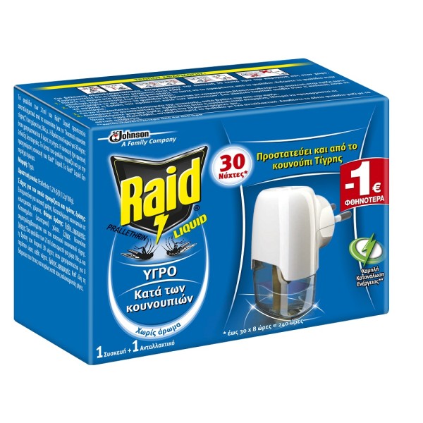 Raid Εντομοαπωθητικό Υγρό Σετ 30 Νύχτες 21ml -1€
